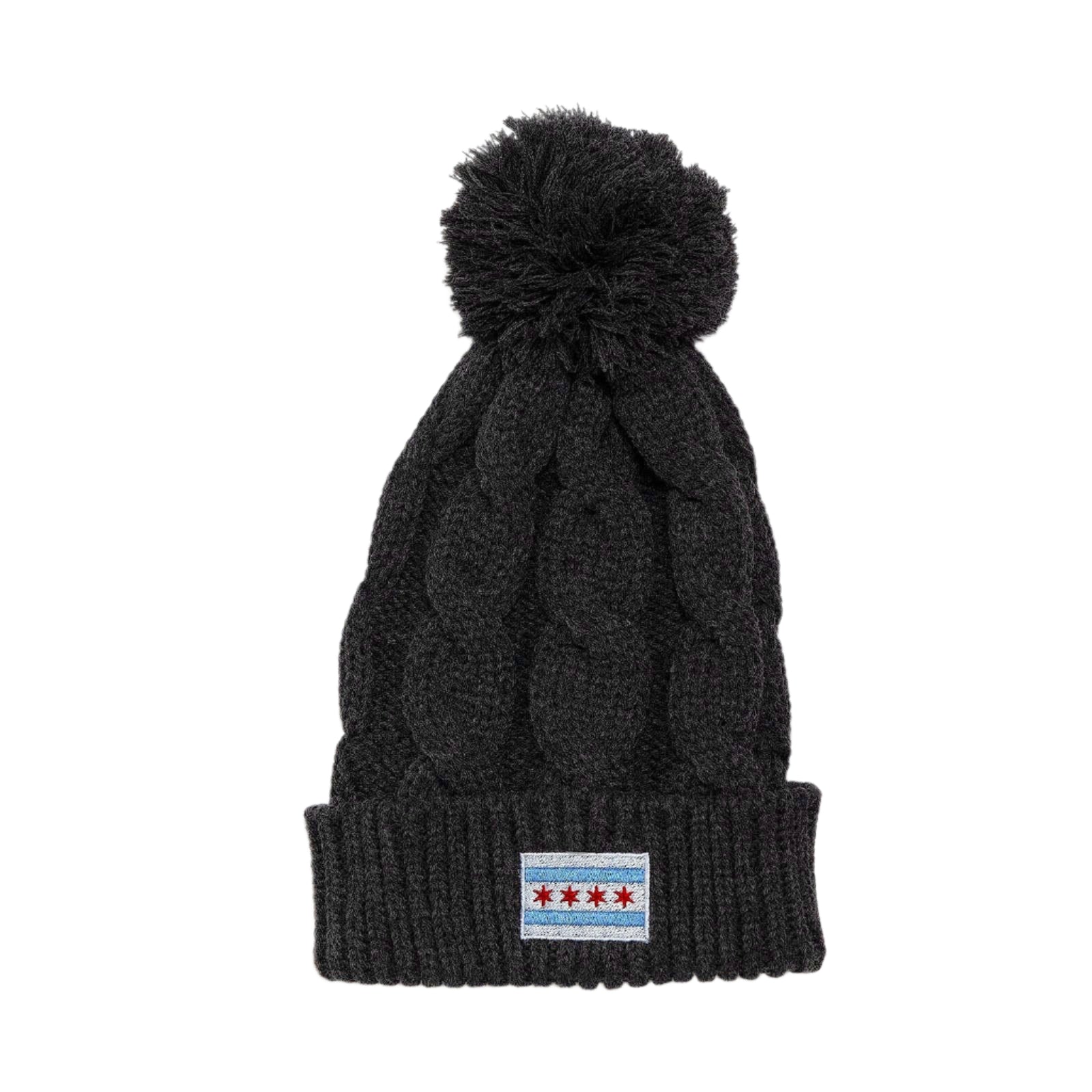 this embroidered chicago flag beanie is great for tailgating, fall festivals or running on the lake front. charcoal gray.